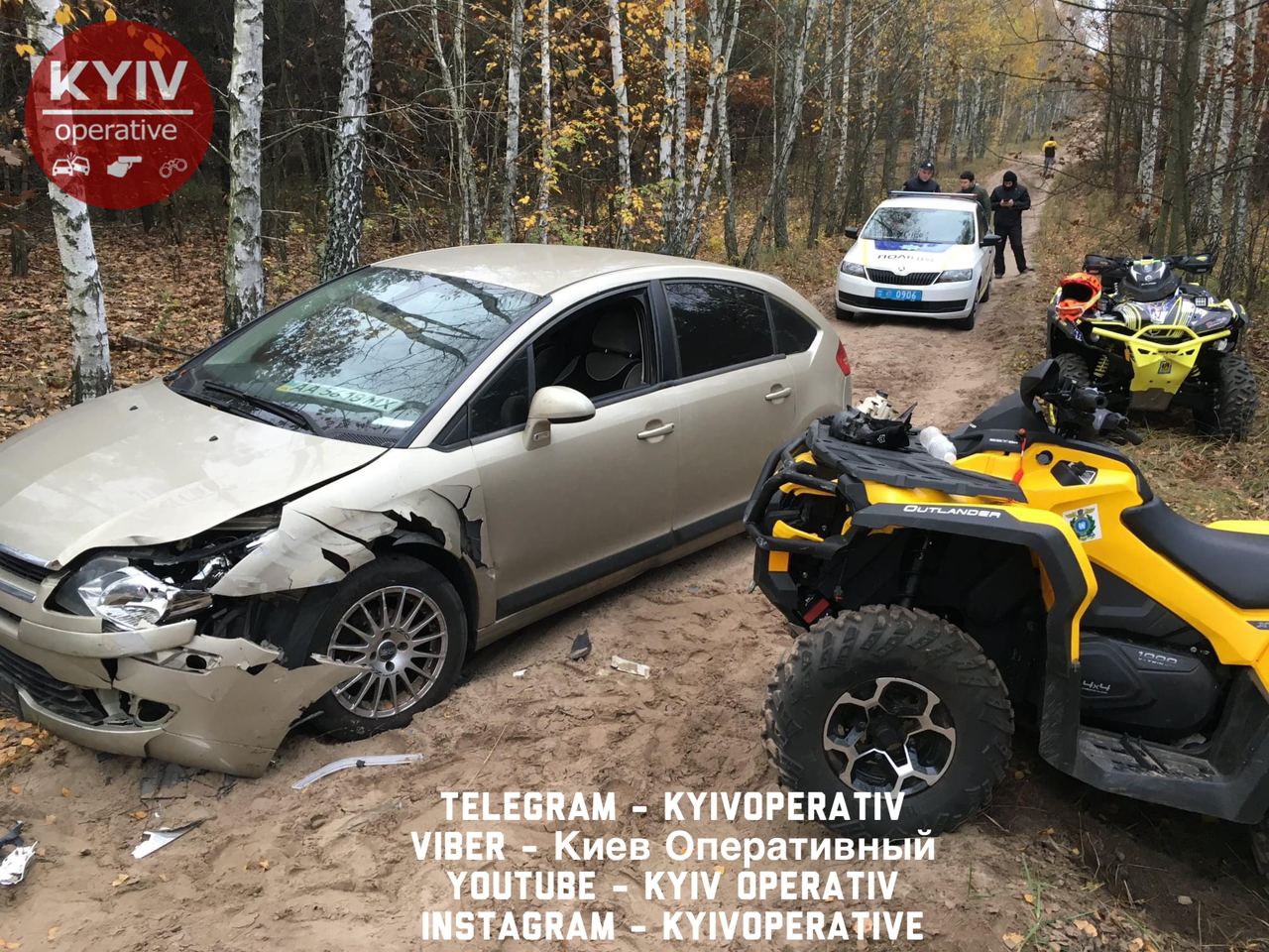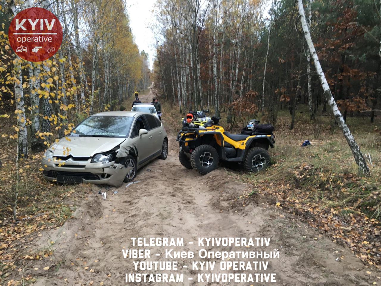 Відомо, що місцем зіткнення двох транспортних засобів стала безлюдна ґрунтова дорога. У лісі не змогли розминутися легковий автомобіль марки Citroen і квадроцикл.