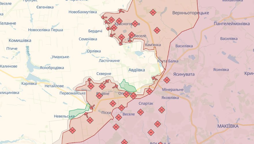 На Авдіївському напрямку українські захисники продовжують стримувати ворога, який не полишає спроб оточити Авдіївку. Сили оборони успішно відбили 49 атак противника в районах Новобахмутівки, Степового, Авдіївки, південніше Сєверного та Тоненького, Первомайського Донецької області.