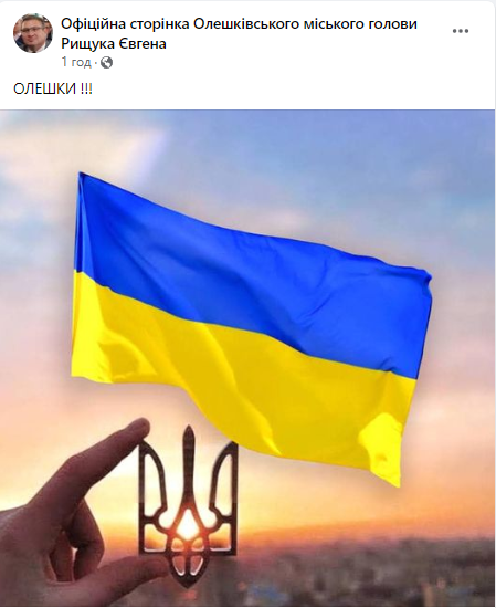 "ОЛЕШКИ!!!", - написав він, додавши фотографію українського малого герба-тризуба та державного прапора.
