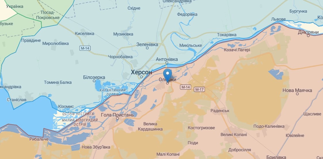 Збройні Сили України, як випливає з повідомлень у соцмережах, ймовірно увійшли до міста Олешки, яке знаходиться на лівому березі Дніпра, за кілька кілометрів від деокупованого 11 листопада Херсона.