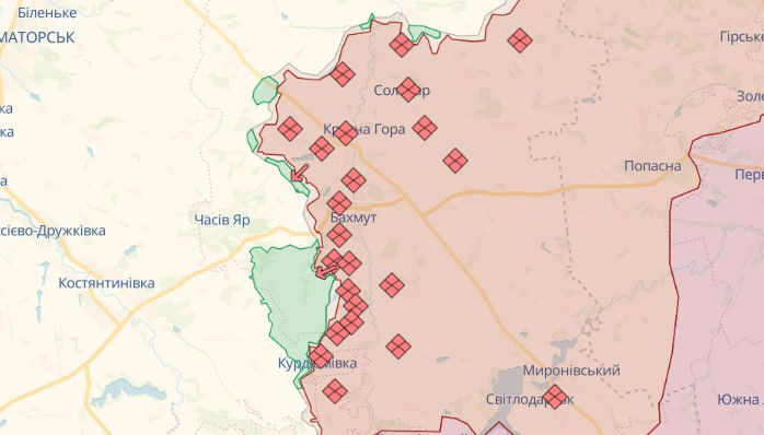 На Бахмутському напрямку наші воїни відбили 10 атак противника біля Богданівки, Кліщіївки, Андріївки та східніше Північного Донецької області. Сили оборони України продовжують штурмові дії південніше Бахмута Донецької області, завдають ворогу втрат у живій силі та техніці, закріплюються на досягнутих рубежах.