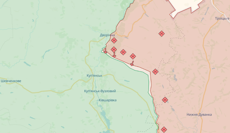 На Куп"янському напрямку противник завдав авіаційних ударів поблизу Іванівки, Кислівки Харківської області. Артилерійських та мінометних обстрілів зазнали понад 15 населених пунктів, зокрема, Дворічна, Синьківка, Петропавлівка, Іванівка, Кислівка, Берестове Харківської області.