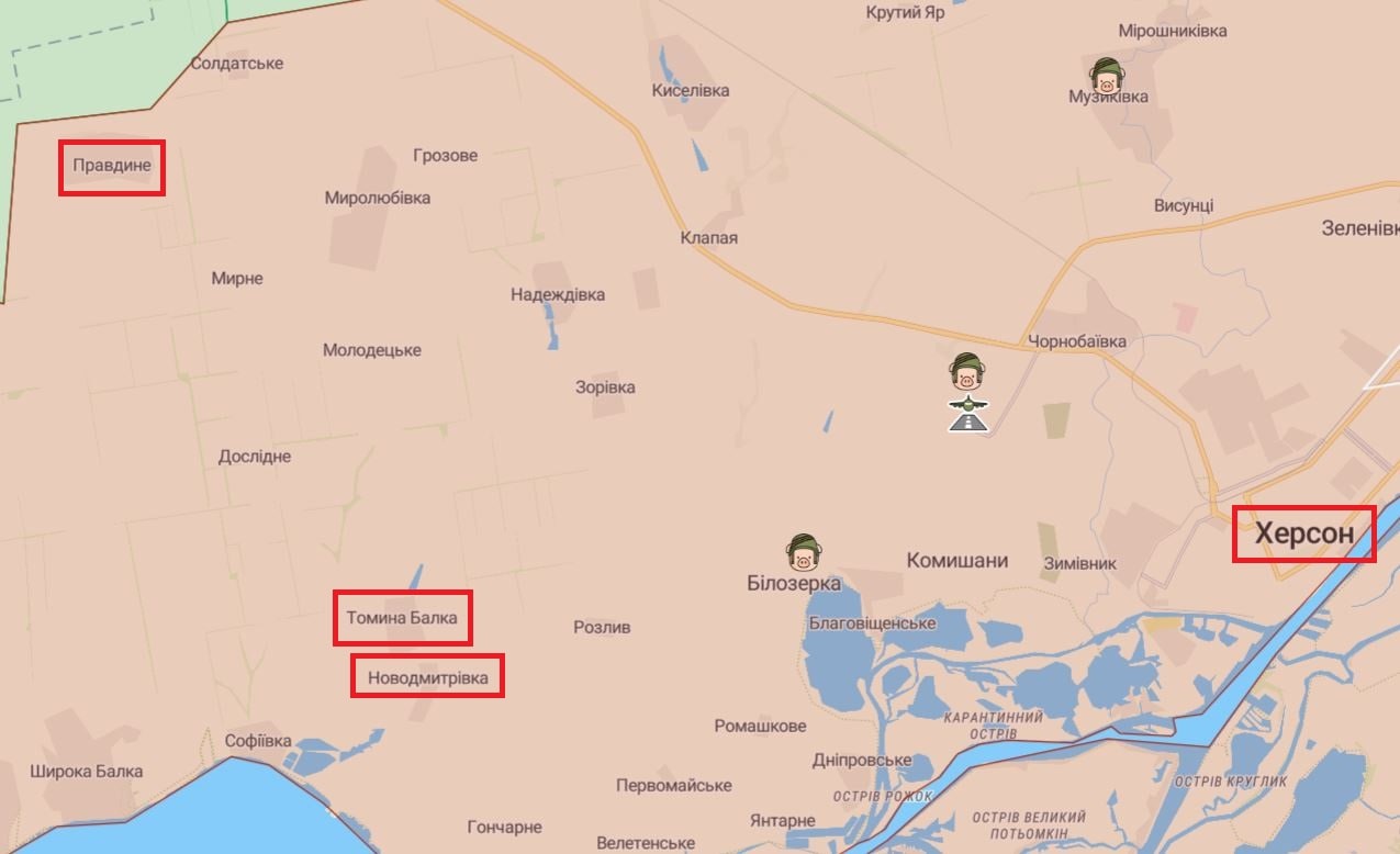 Серед звільнених з-під окупації населених пунктів - Новодмитрівка, Архангельське, Томина Балка та Правдине.