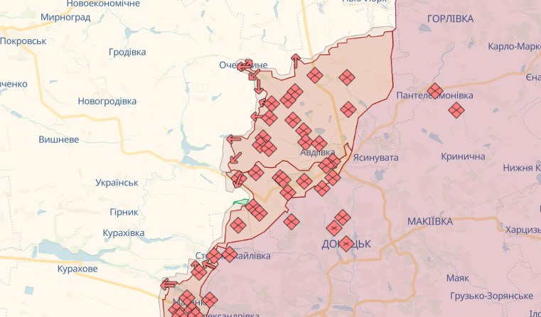 На Авдіївському напрямку відбито 18 атак в районах населених пунктів Новобахмутівка, Семенівка, Уманське, Керамік, Бердичі, Первомайське, Очеретине, Новокалинове, Яснобродівка та Нетайлове Донецької області.