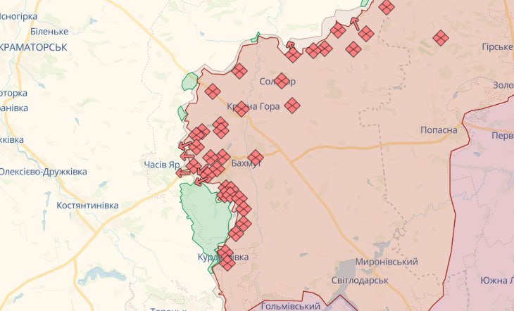 На Бахмутському напрямку відбито 16 атак в районах населених пунктів Золотарівка, Спірне, Виїмка, Часів Яр, Іванівське, Кліщіївка, Андріївка Донецької області.