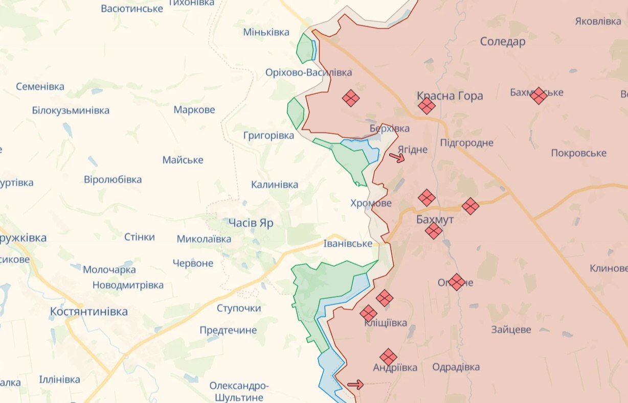 Бахмутський напрямок: упродовж доби наступали напрямку Оріхово-Василівки Донецької області. Обстріляли н.п. Васюківка, Оріхово-Василівка, Богданівка, Калинівка, Часів Яр, Іванівське, Озарянівка, Біла Гора, Костянтинівка, Дружба та Північне на Донеччині.