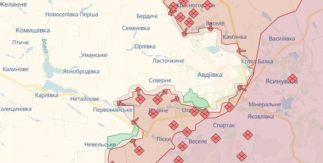 На Авдіївському напрямку ворог вів безуспішні штурмові дії східніше Новобахмутівки, Степового та Авдіївки Донецької області, де Силами оборони відбито 7 атак. Артилерійських та мінометних обстрілів ворога зазнали понад 15 населених пунктів, серед них Олександропіль, Керамік, Авдіївка, Сєверне, Тоненьке, Первомайське Донецької області.