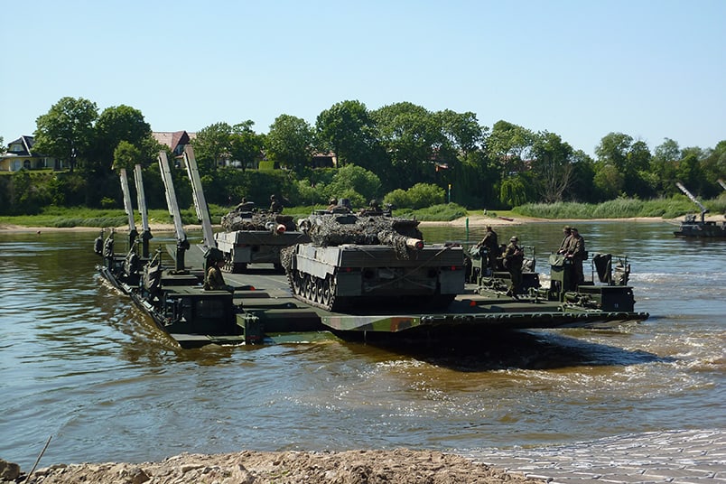 Зазначені системи-амфібії дозволяють швидко зводити понтонні мости для переправляння техніки через водні перешкоди.