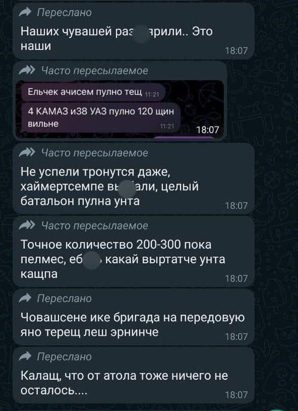 Тим часом військком Чувашії пригрозив кримінальною відповідальністю за поширення інформації про розгромлений полк мобілізованих.