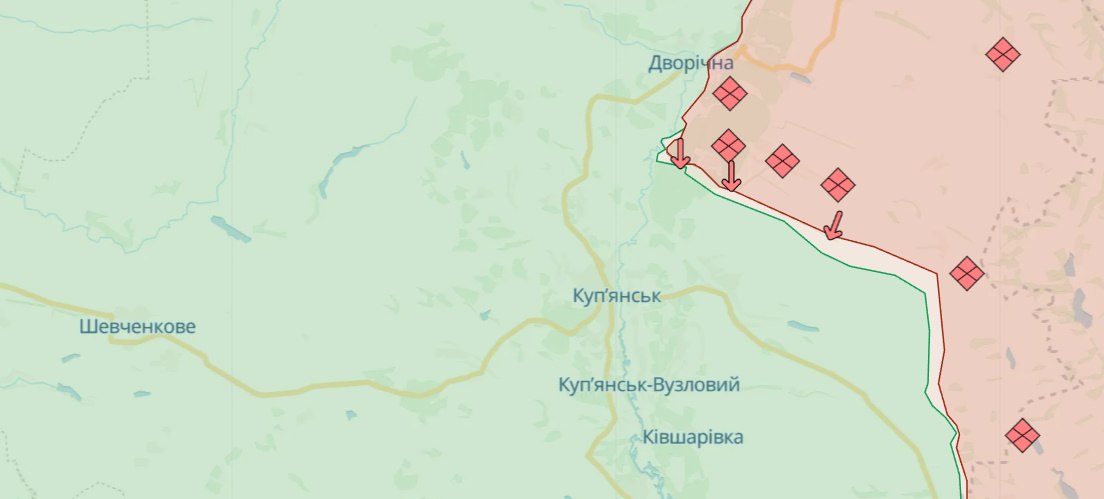 На Куп'янському напрямку противник завдав авіаційного удару біля Надії Луганської області. Обстріляв з артилерії та мінометів населені пункти Синьківка, Петропавлівка, Кислівка, Табаївка, Крохмальне Харківської області.