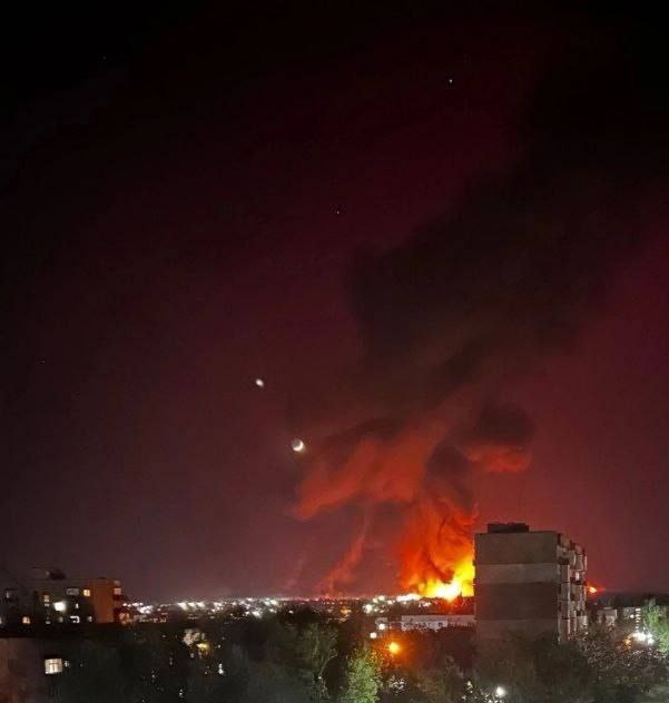 У Ровеньках, що на окупованій Луганщині, після влучного удару палає на території місцевої нафтобази.
