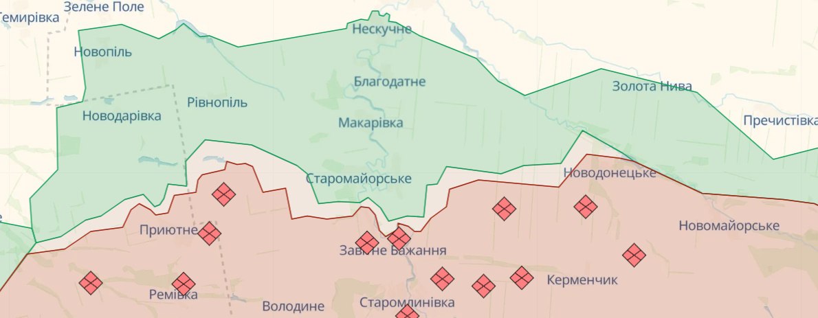 Шахтарський напрямок: ЗСУ відбили всі атаки біля Водяного, Золотої Ниви та Старомайорського. Росіяни обстріляли близько 10 н. п., серед них - Водяне, Вугледар, Пречистівка, Золота Нива та Благодатне.