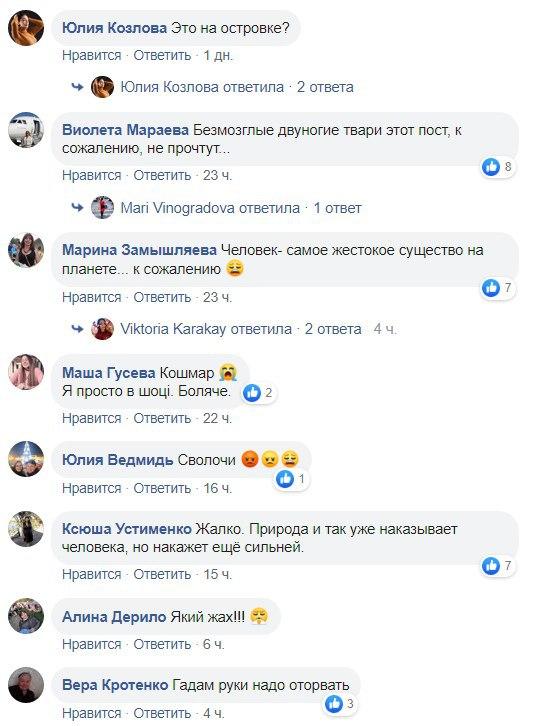 "Якщо цей пост дійде до тих, хто коли-небудь спалював ось так очерет. Пам'ятайте, земля кругла і одного разу ви пізнаєте біль втрати! Або може теж згорите заживо. Коли заволаєте "Хоспаді, за шшштооо?!". Знайте - це вам за родину черепах!" - написала розгнівана жінка.