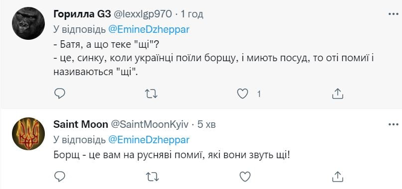 Заступниця міністра закордонних справ України Еміне Джапарова повідомила у Twitter, що український борщ дерусифіковано.