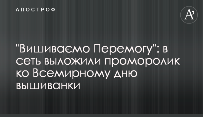 Організатори Всесвітнього дня вишиванки презентували тематичне промо відео до свята, яке цьогоріч відзначатимуть 16 травня. Свято засвідчує національну ідентичність і збереження культурних надбань української нації, у 2024 році пройде під гаслом "Вишиваємо Перемогу".