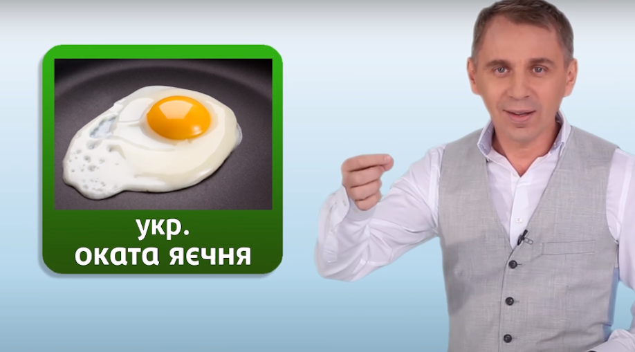 "Далі розмова піде про смажені яйця. Типове запитання від наших глядачів: "Як називається українською яєчня глазунья?". Яєчня з цілим жовтком називається оката яєчня", - пояснив він.