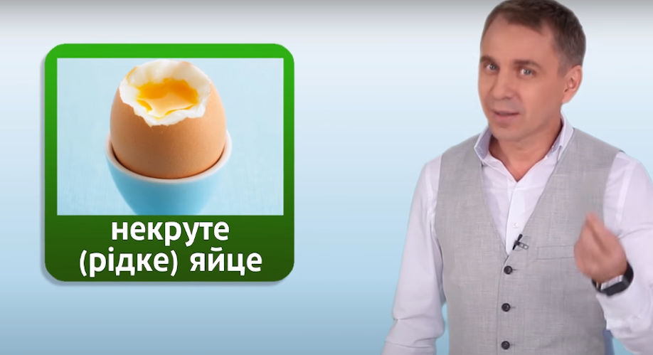 Він зазначив, що не варто називати продукт "яєчко", бо це парна чоловіча статева залоза, а потрібно казати "яйце". До того ж не "всмятку", а "некруте (рідке) яйце", - розповів мовознавець.