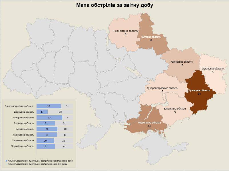 Повідомляється, що протягом минулої доби російські війська обстріляли 8 областей України.