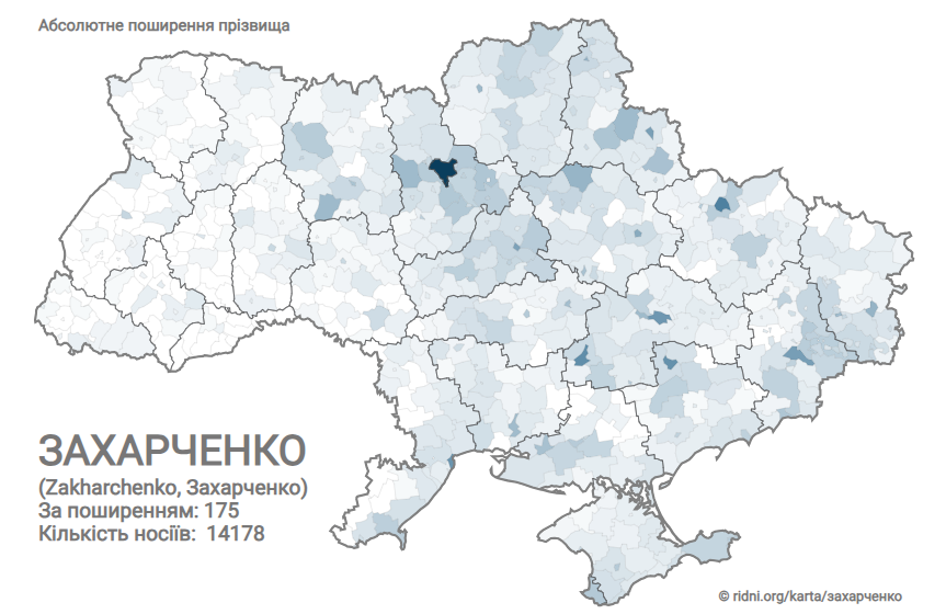 Скажімо, прізвище Захарченко, згідно з даними генеалогічного ресурсу "Рідні", за поширенням займає 175 місце.