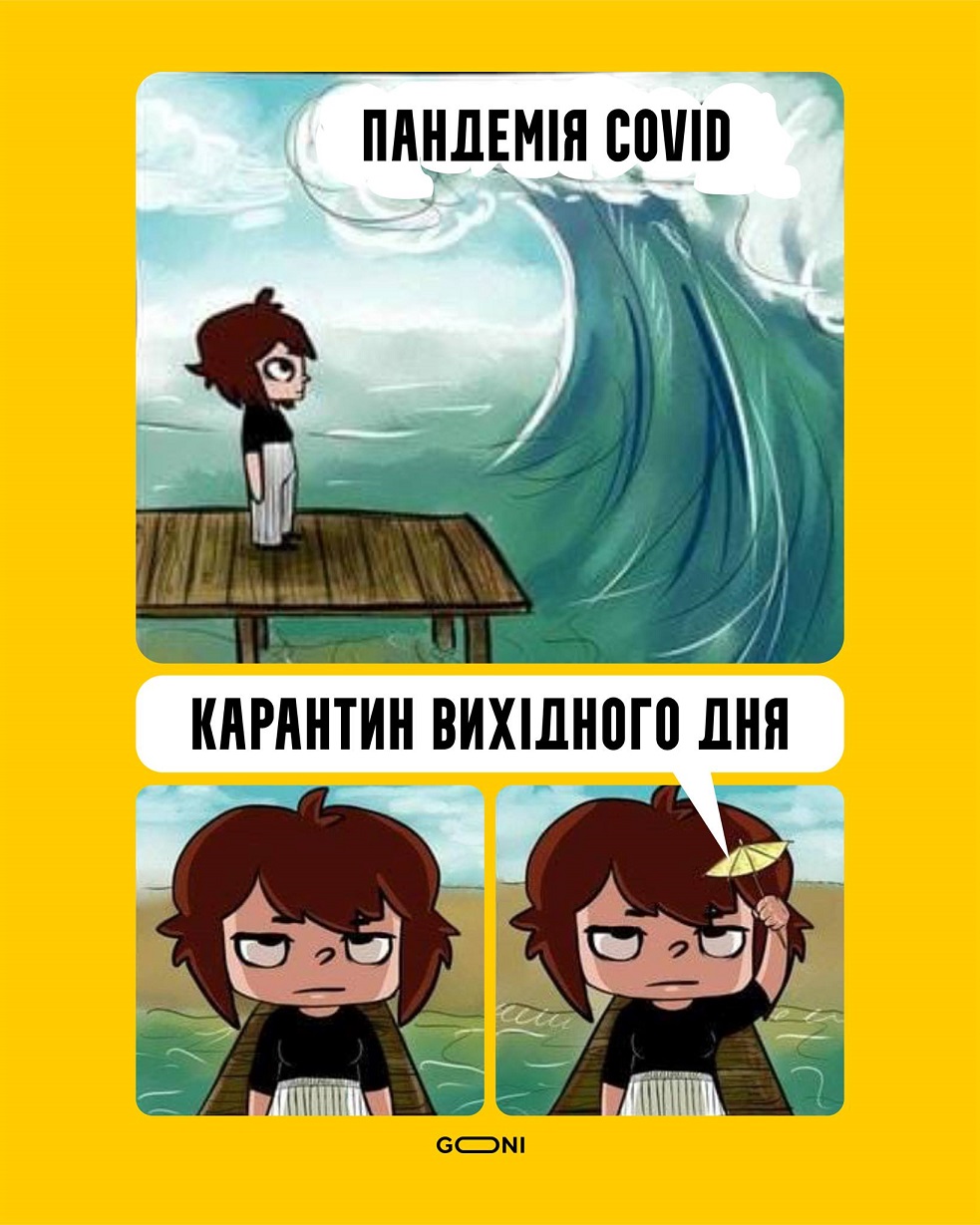 На введення в Україні карантину "вихідного дня", яким обмежується робота розважальних закладів та ресторанів, користувачі мережі відреагували з гумором.