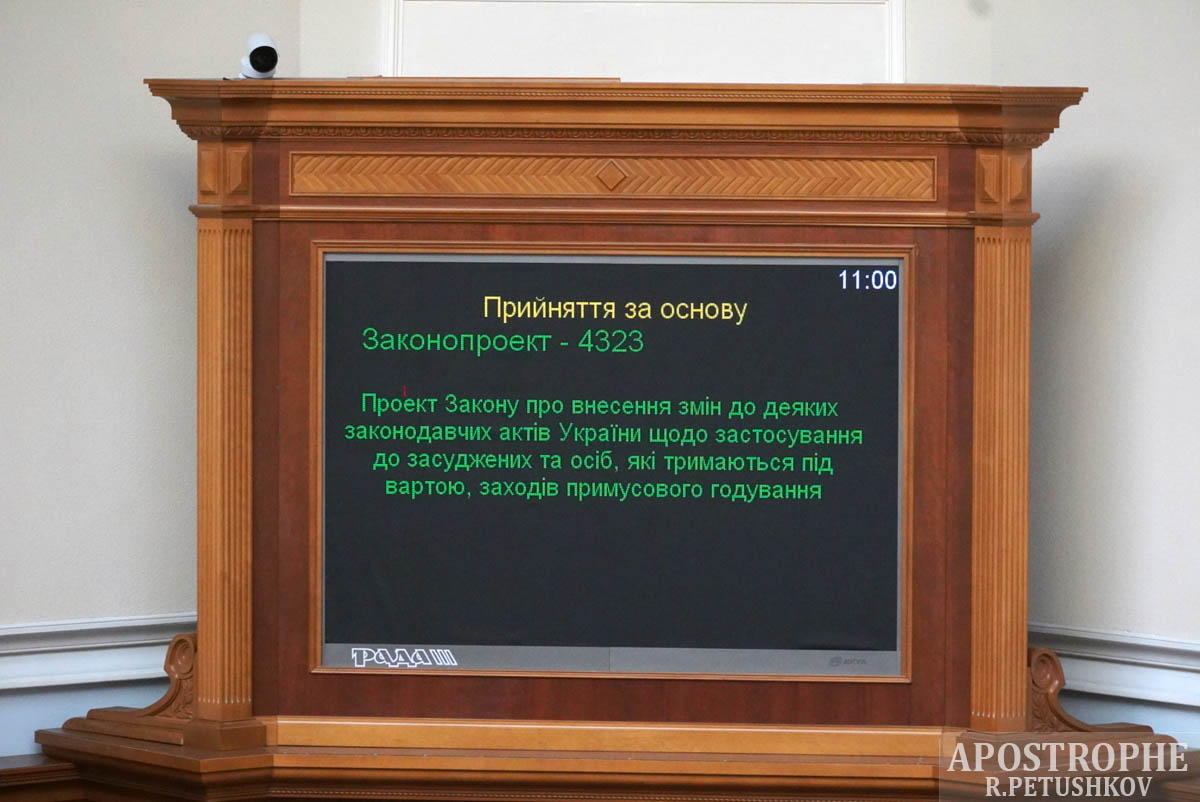 На засіданні Верховної Ради в четвер, 9 вересня, народні депутати в першому читанні хвалили законопроект №4323 про внесення змін до деяких законодавчих актів України щодо примусового годування засуджених та осіб, які утримуються під вартою.