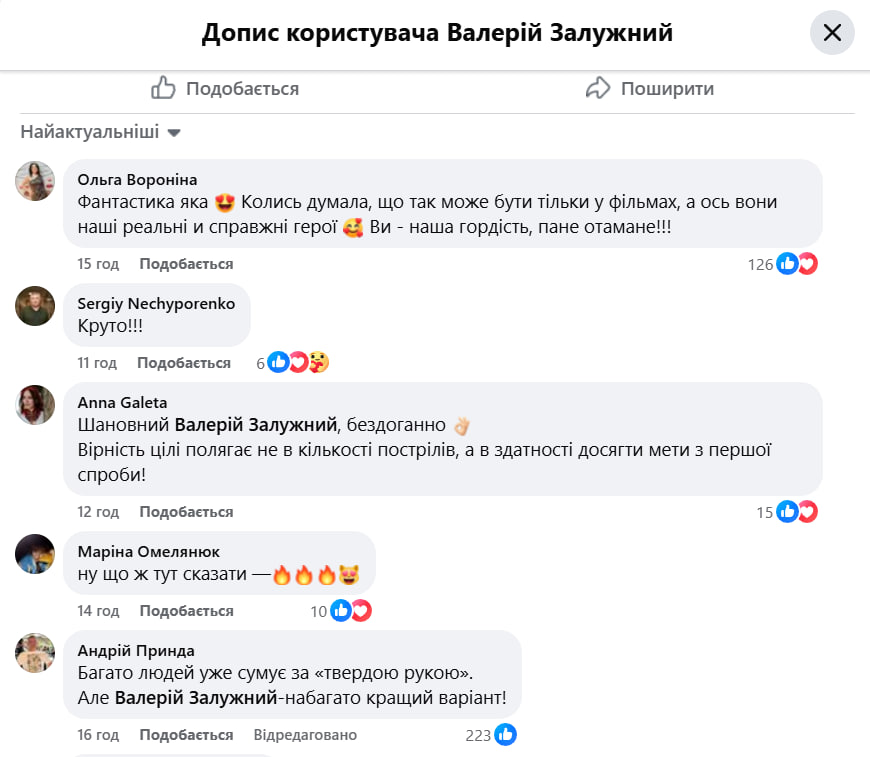 Тим часом під постом ексголовнокомандувача підписники залишили захопливі коментарі.