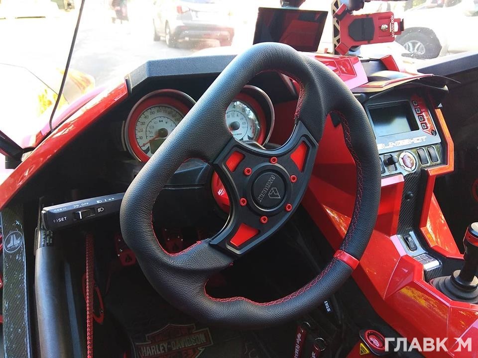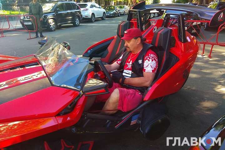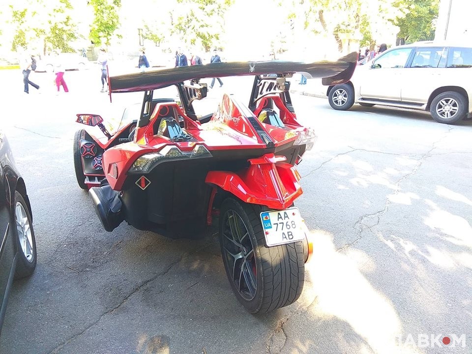 За кермом триколісного боліда Polaris Slingshot SL, поміченого недавно в Києві, раніше бачили епатажного українського художника Сергія Пояркова.