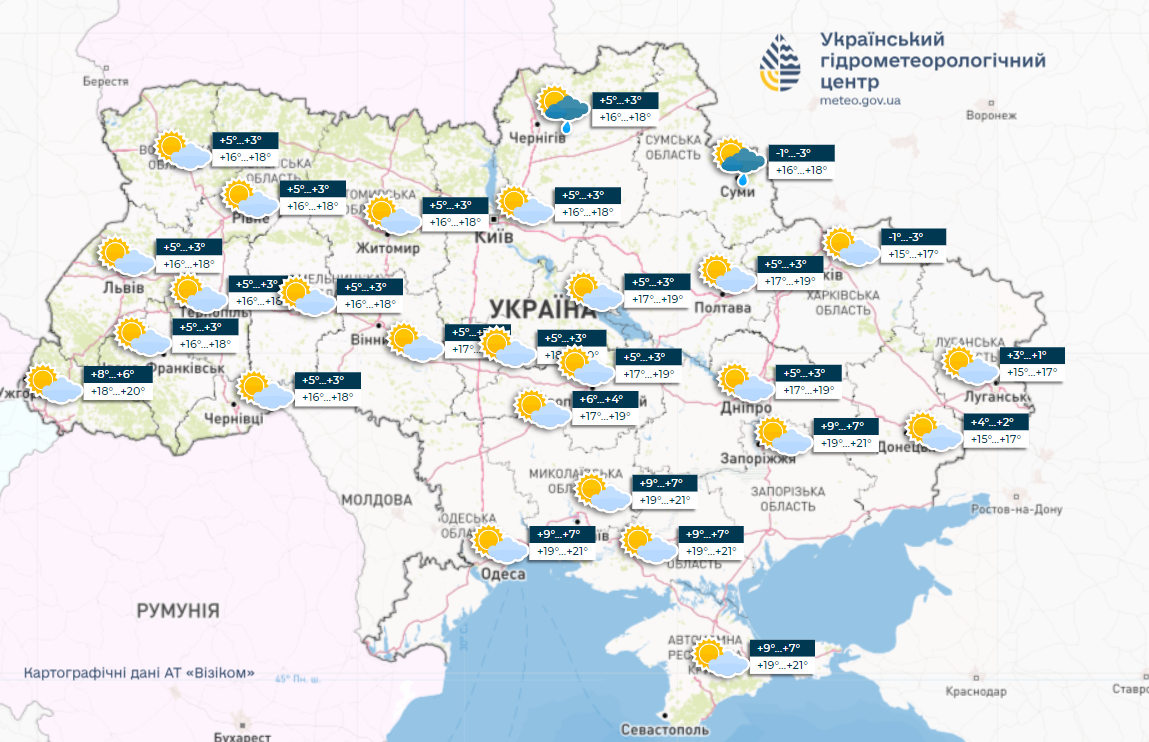 Що стосовно Сумської та Харківської областей – там вдень також варто очікувати 16-18°, а ось вночі завітають заморозки – до 1-3° морозу.