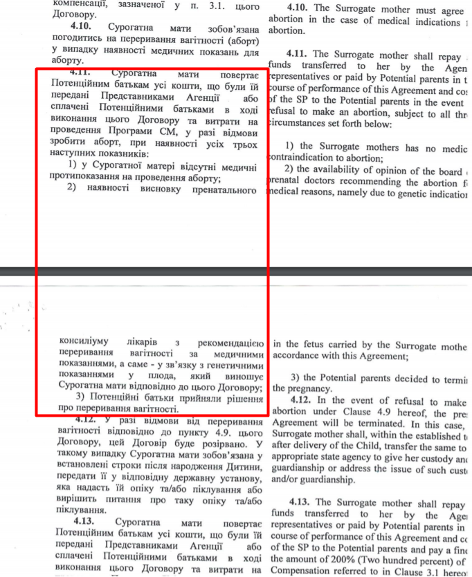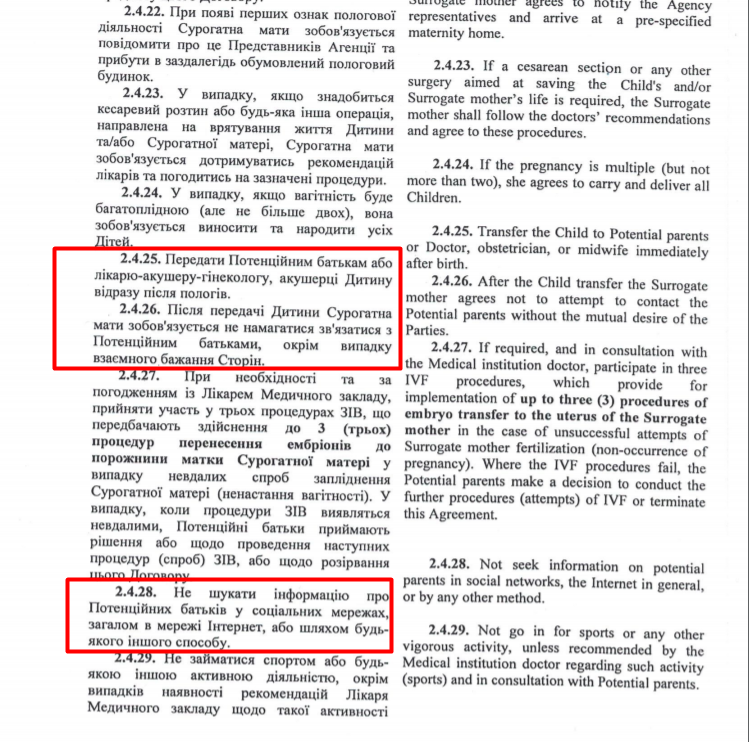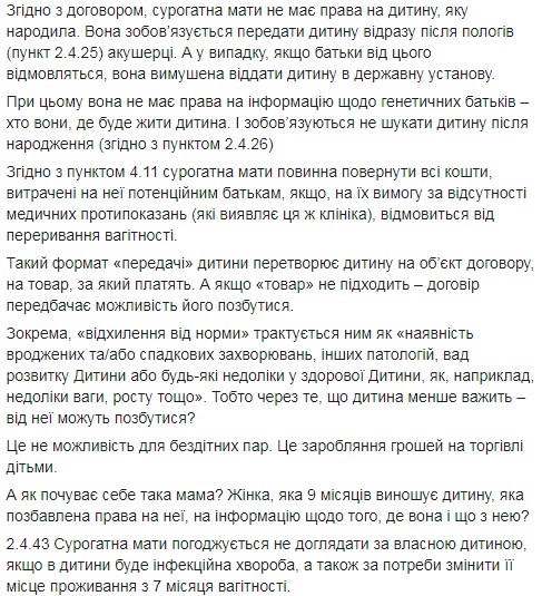 Щоб підтвердити свої слова омбудсмен опублікував частини "договору", які сурогатна мати підписує перед наданням "послуги".