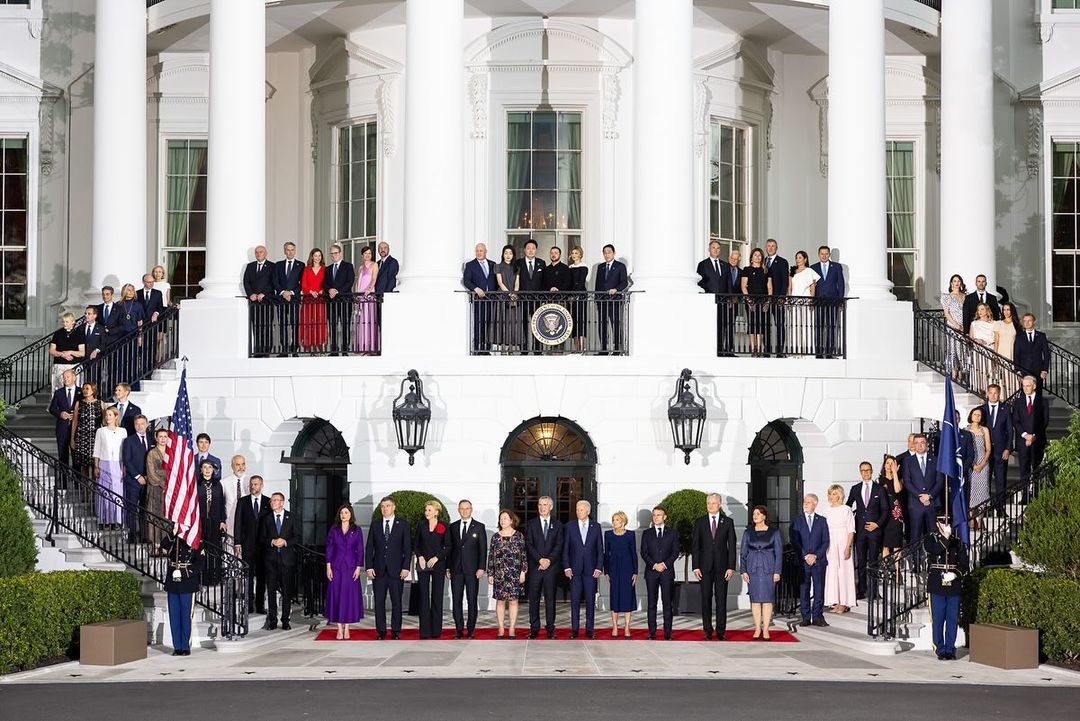 На масштабній фотографії з саміту НАТО у Вашингтоні можна помітити президента України, який стоїть на балконі разом з першою леді Оленою Зеленською. В дописі до знімків президент України ще раз наголосив на тому, що вступ України до НАТО є незворотним процесом: