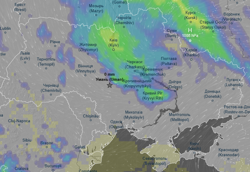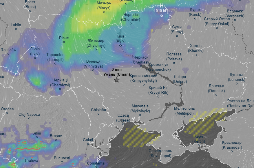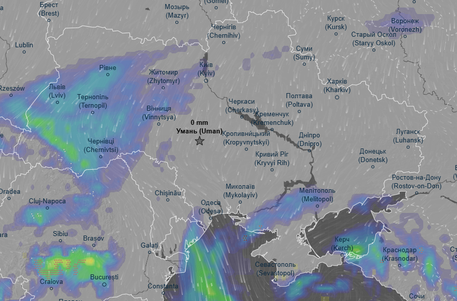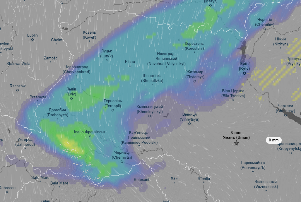 Про це свідчать дані погодного радара Ventusky.