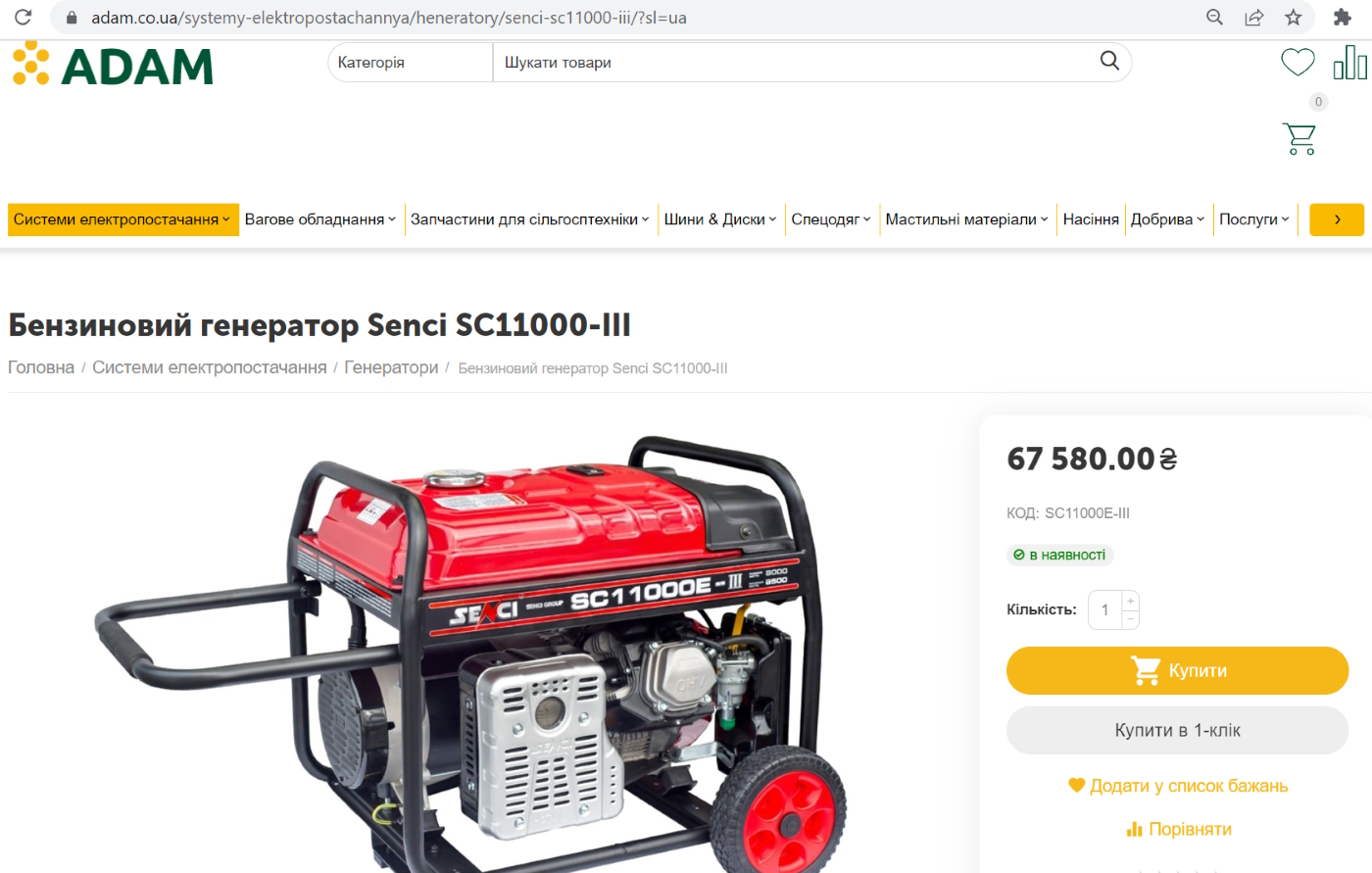 Ще міськрада замовила 25 мобільних бензинових генераторів Senci SC11000E-III повною потужністю 11/11,2 кВА без літери A по 105 тис грн. Нині ця модель продається у півтора раза дешевше – по 62–68 тис грн.