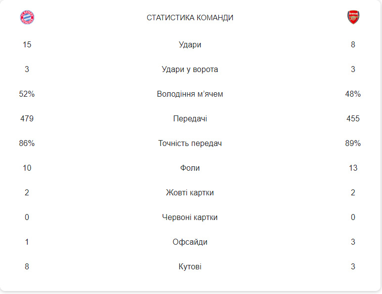 Цікаво, що у "Баварії" та "Арсеналу" велика історія протистоянь у Лізі чемпіонів. Це була сьома очна дуель, але вперше на стадії 1/4 фіналу. До цього ж або у груповому раунді, або у 1/8 фіналу. І англійці не змогли зняти баварського прокляття - вилетіли 5 разів із 5-ти.