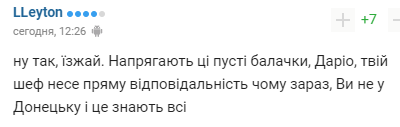 "Ну так їдь. Напружують ці пусті балачки, Даріо, твій шеф несе пряму відповідальність, чому зараз ви не в Донецьку, і це знають всі".