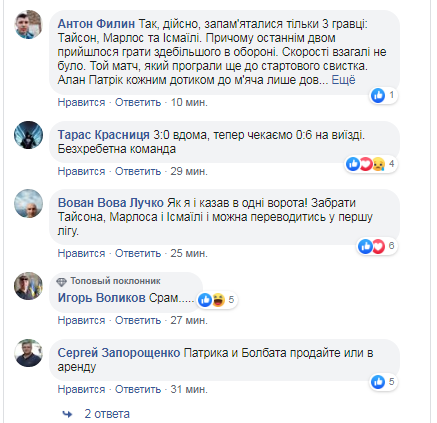 Також люди виділяють гру окремих футболістів, які, на їхню думку, повинні покинути команду найближчим часом.