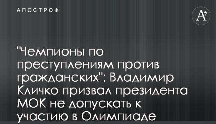 Олімпійський чемпіон з боксу у надважкій категорії, багаторазовий чемпіон світу Володимир Кличко звернувся до президента Міжнародного олімпійського комітету Томаса Баха із закликом не дозволяти росіянам брати участь в Олімпійських іграх.