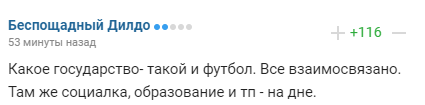 "Яка держава, такий і футбол. Усе взаємопов'язано. Там же соціалка, освіту і тп - на дні".
