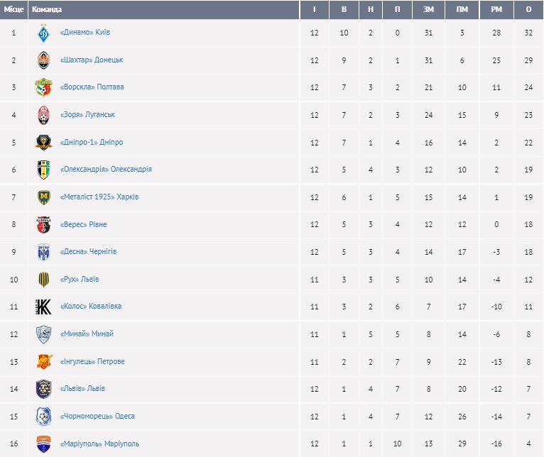 У неділю, 24 жовтня, завершився 12-й тур чемпіонату України з футболу.