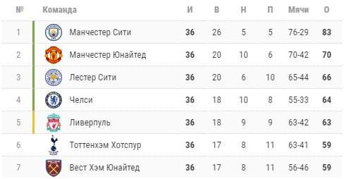 У Прем'єр-лізі в середині тижня визначився чемпіон, яким став "Манчестер Сіті". Друге місце, швидше за все, займе "Манчестер Юнайтед". За ще дві путівки в Лігу чемпіонів триває запекла боротьба. Реальних претендентів троє - "Лестер", "Челсі" і "Ліверпуль". Теоретичні шанси зберігають "Тоттенгем" і "Вест Гем". "Ліверпуль" в разі перемог в двох останніх турах гарантовано потрапить в Лігу чемпіонів, так як "Лестер" і "Челсі" зіграють між собою і, як мінімум, один з клубів точно втратить очки. До того ж і ліверпульців перевага за особистими зустрічами перед конкурентами.