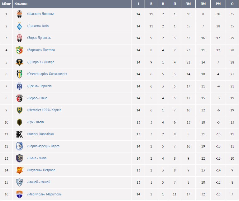 У неділю, 7 листопада, завершився 14-й тур чемпіонату України з футболу.