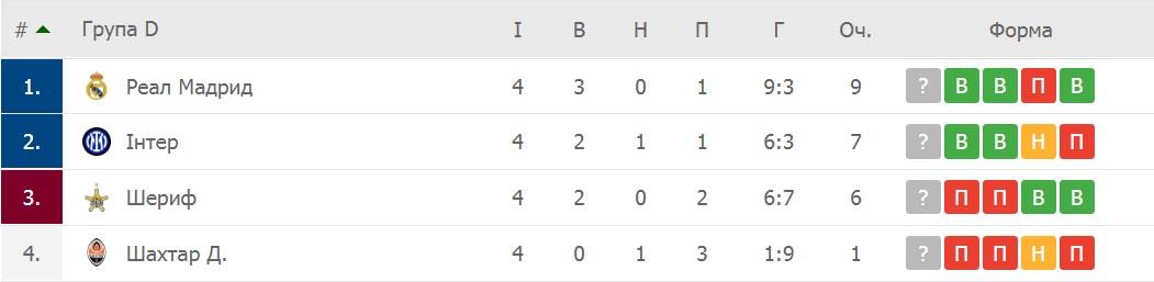 Донецький "Шахтар" знову програв мадридському "Реалу", а тираспольський "Шериф", який очолює українець Юрій Вернидуб, – міланському "Інтеру".