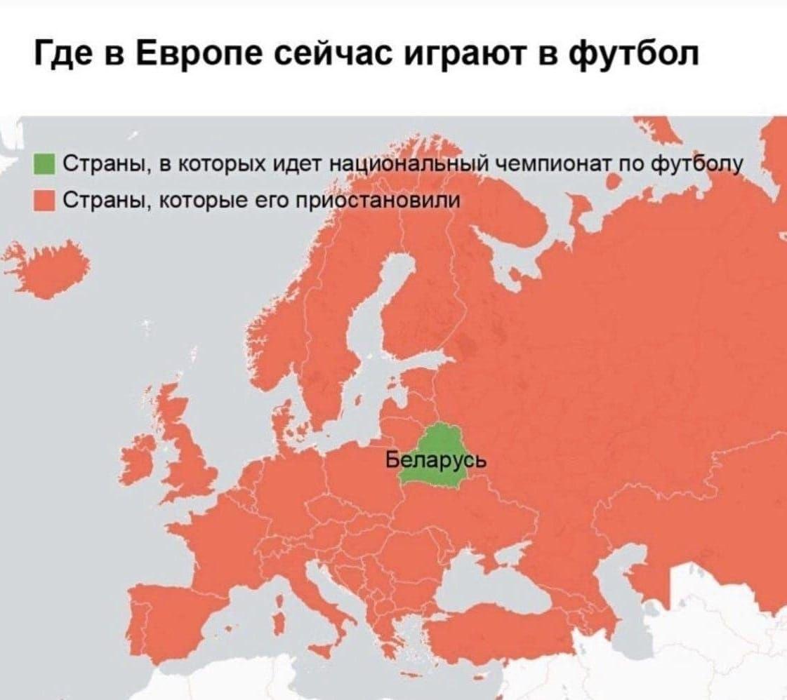 Користувачі в мережі інтернет з почуттям гумору оцінили ситуацію з призупиненням через коронавірус футбольних турнірів по всій Європі, окрім Білорусі, де місцевий чемпіонат все ще проводиться.