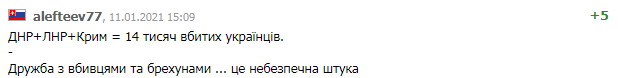 "ДНР + ЛНР + Крим = 14000 убитих українців. Дружба з вбивцями і брехунами - це небезпечна штука".