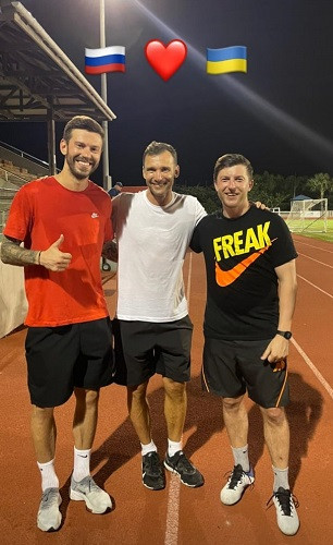 Головний тренер збірної України Андрій Шевченко сфотографувався з російським нападником Федором Смоловим, який є фанатом президента Російської Федерації Володимира Путіна. Раніше Смолов заявив, що він пишається Путіним.