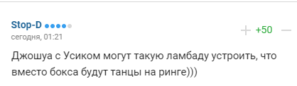 "Джошуа з Усиком можуть таку ламбаду влаштувати, що замість боксу будуть танці на рингу)))".