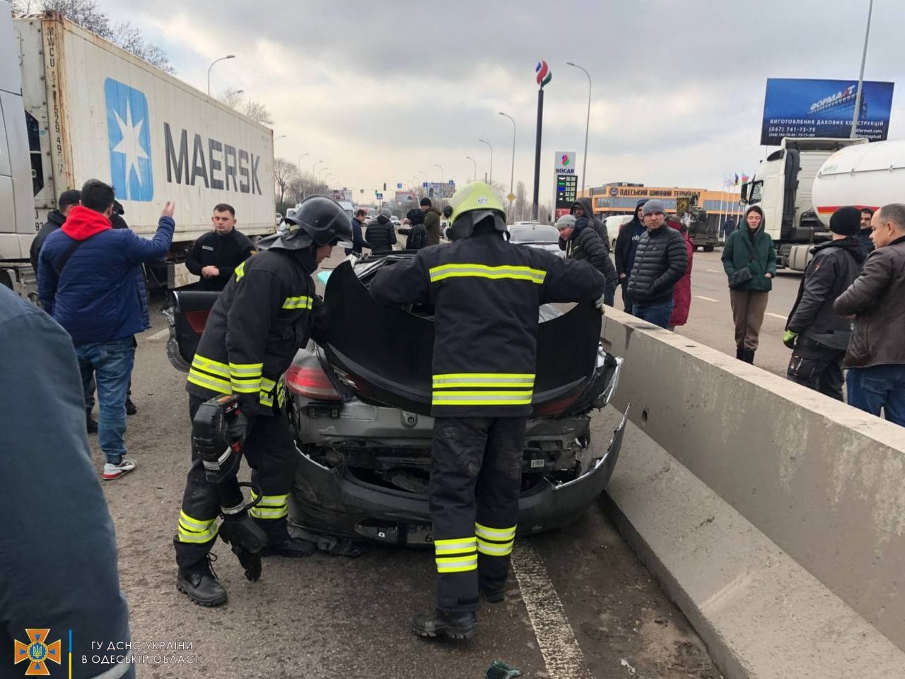 Трагедія сталася на Київській трасі в Малиновському районі - в аварію потрапили три автомобілі. Машина марки Mercedes, на якій їхала Вікторія Данченко, зіткнулася з Kia, після чого вона вдарилася в евакуатор, фуру, а потім у відбійник.
