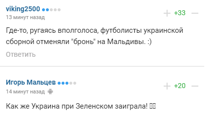"Десь, лаючись стиха, футболісти української збірної скасовували "бронь" на Мальдіви".