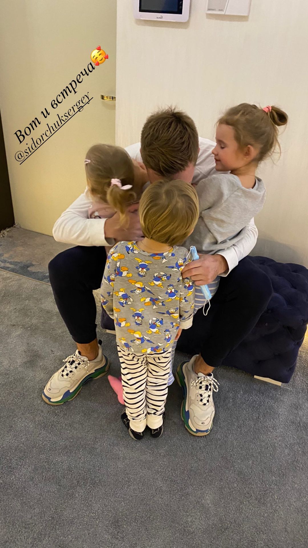 "Ось і зустріч", - написала Анна Сидорчук, опублікувавши фотографію чоловіка, який обіймає дітей.