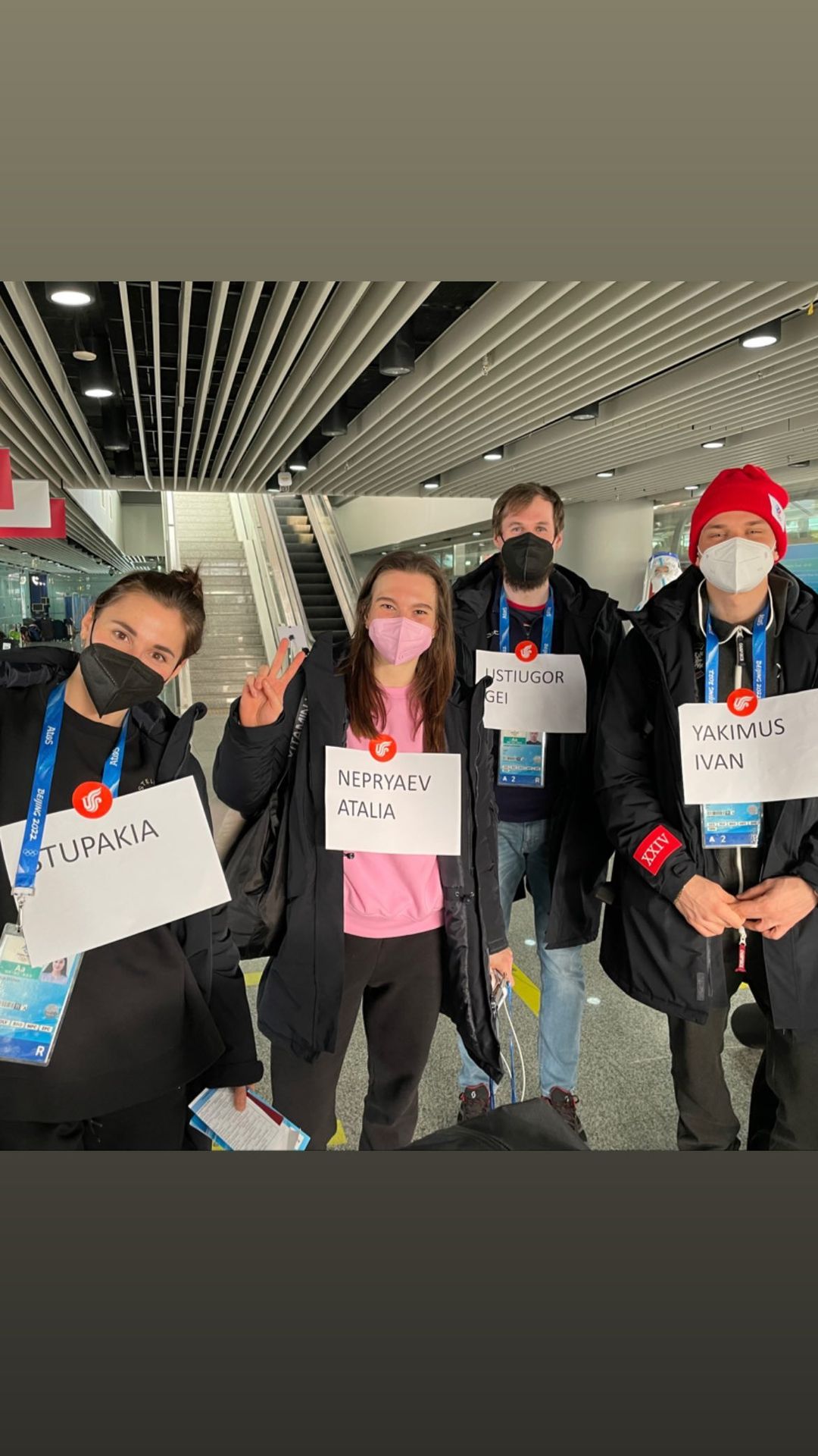 Російська лижниця Юлія Ступак показала епічні кадри з їхньої зустрічі китайською делегацією в аеропорту після прильоту до Пекіна для участі в зимових Олімпійських іграх-2022.