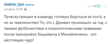"Луческу прийшов в команду, готову боротися за топ-6, а не за чемпіонство! Те, що з "Динамо" відбулося за рік, з такими футболістами і психологічними травмами після тренувань Хацкевича і Михайличенко - це справжнє диво!"